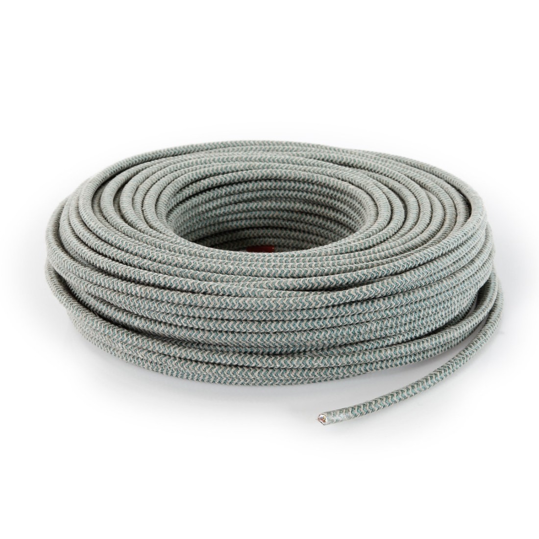 Rundes, farbiges textilummanteltes Elektrokabel aus Rohgarn in Sand und Salbei