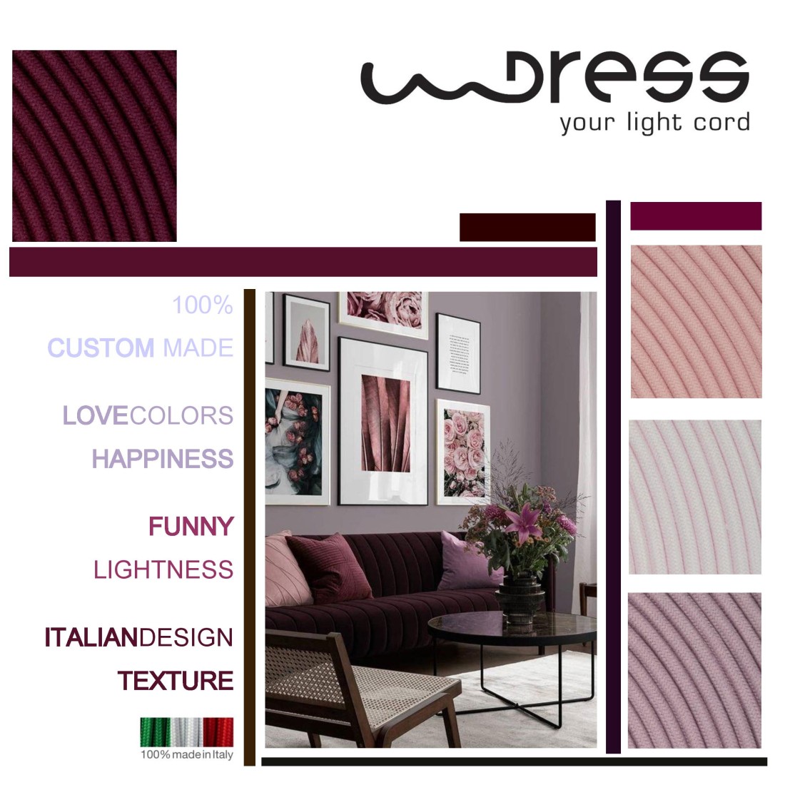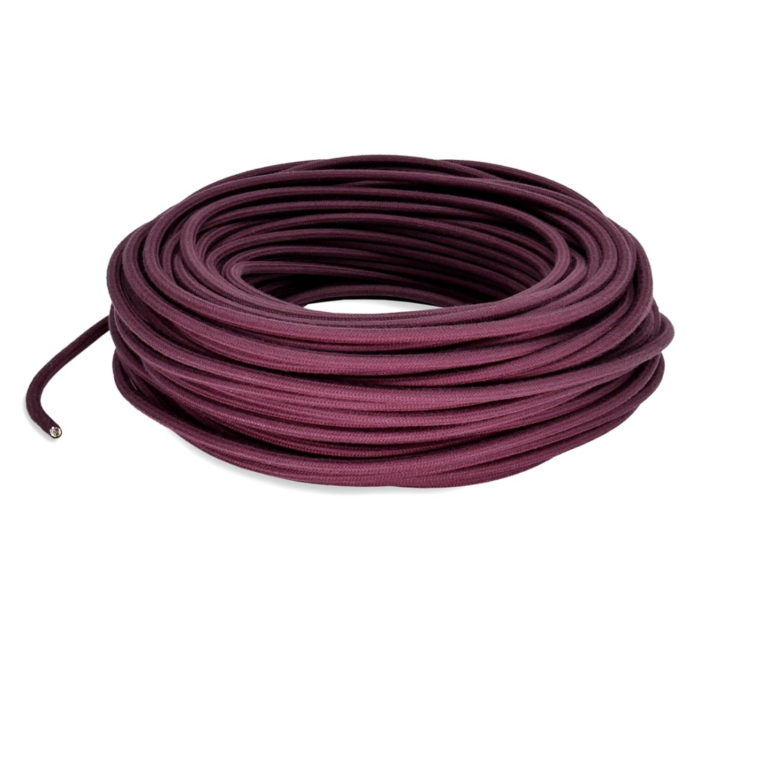 Rundes, farbiges textilummanteltes Elektrokabel aus Rohgarn in Aubergine.