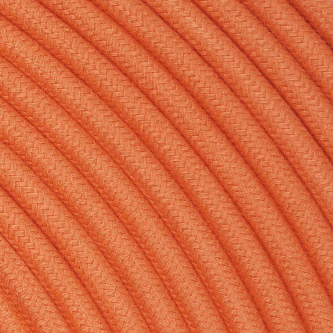 Rundes, farbiges textilummanteltes Elektrokabel aus Rohgarn in Mandarine.
