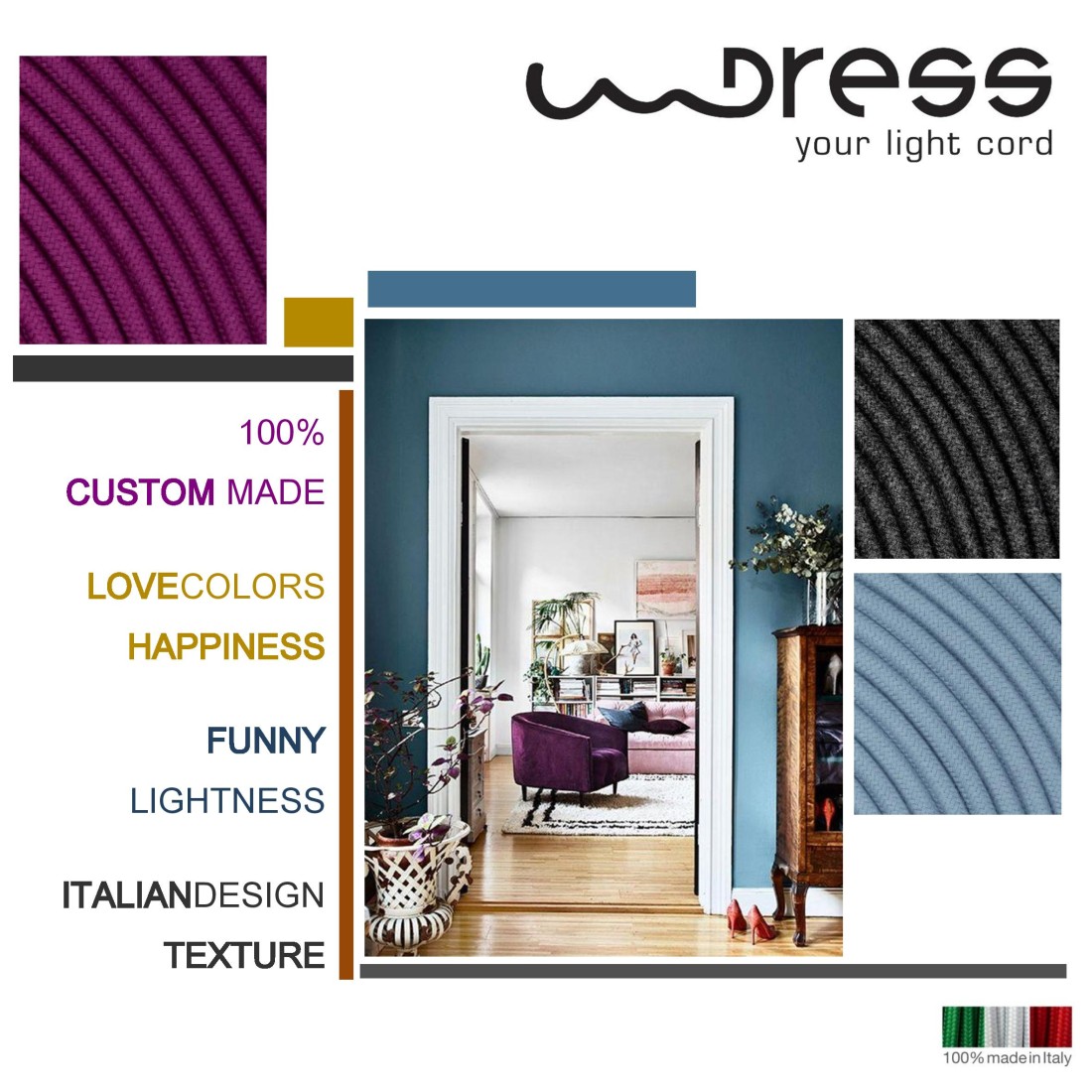 Wählen Sie aus unseren Textilkabeln das Modell, das Ihnen am besten gefällt, und kombinieren Sie es mit einer Deckenrosette und einer Lampenfassung, um Ihre individuelle Pendelleuchte zu gestalten.
