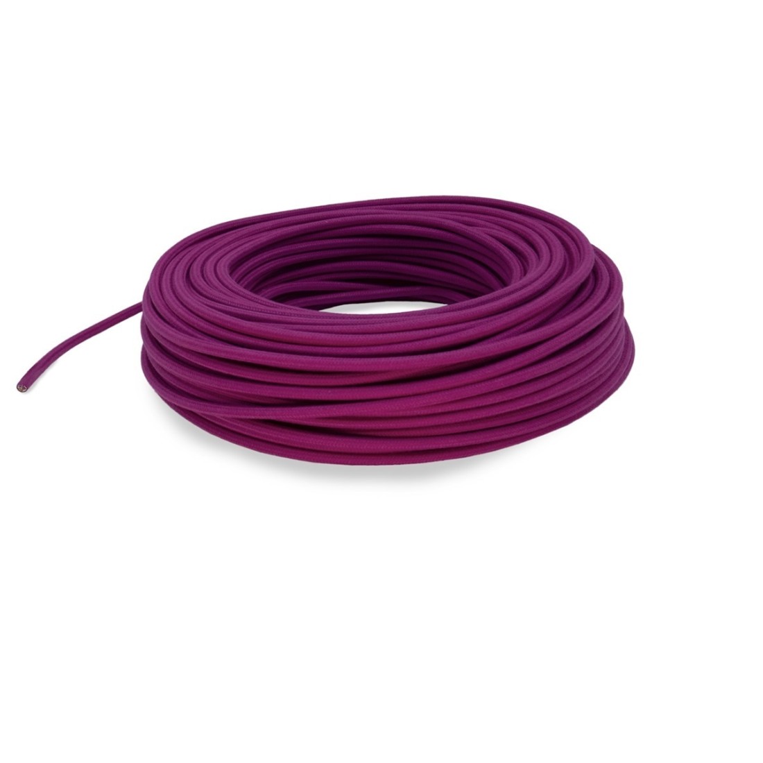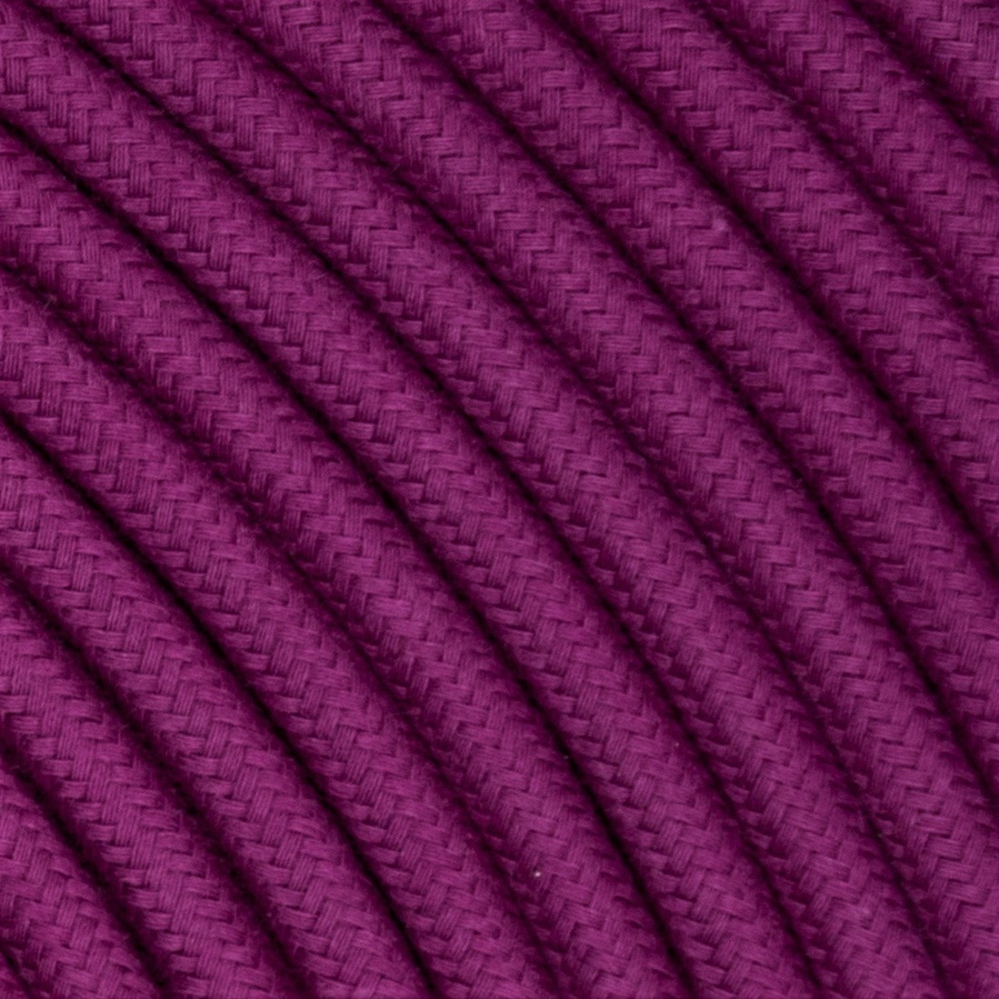 Rundes, farbiges textilummanteltes Elektrokabel aus Rohgarn in Zyklamen.