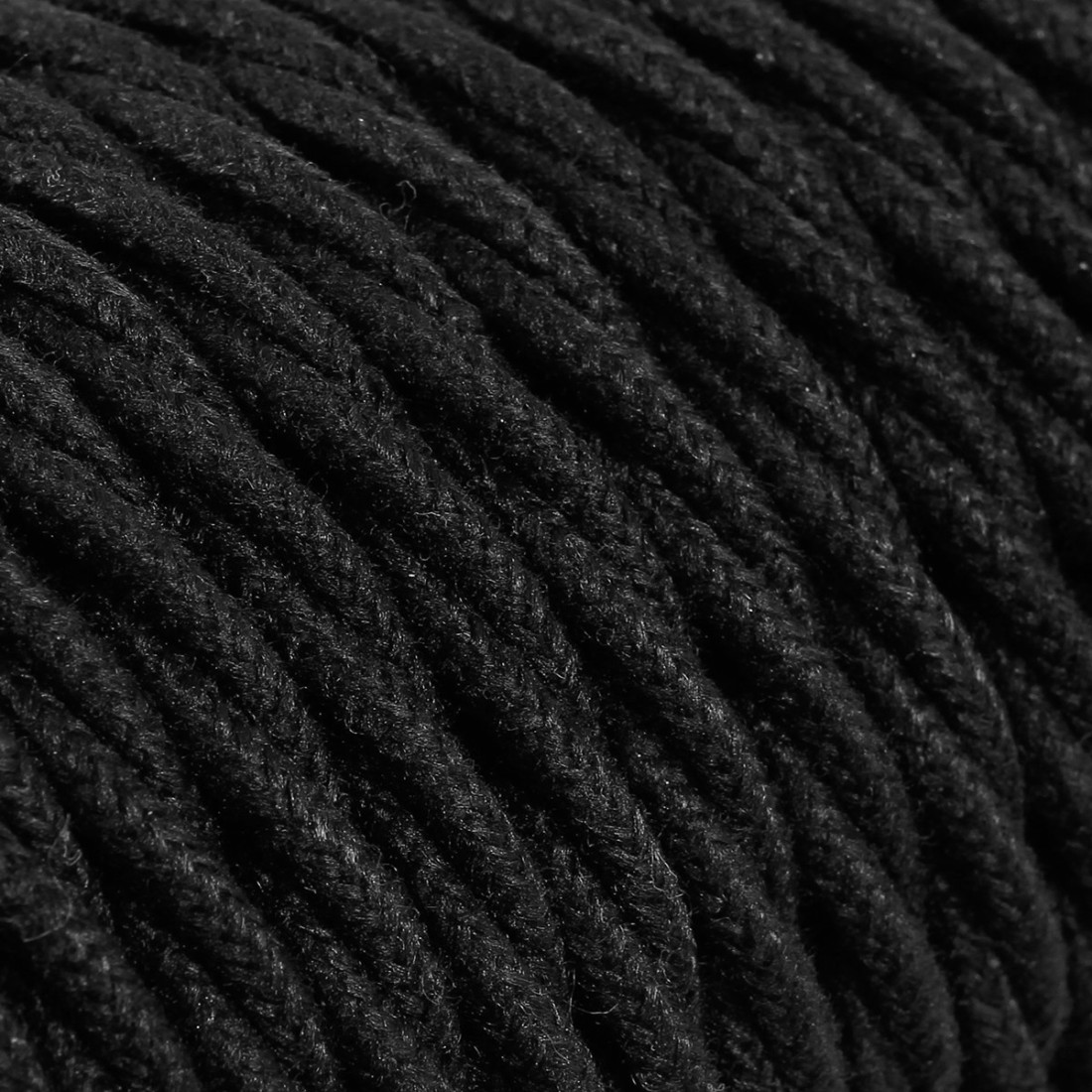 Geflochtenes, textilummanteltes Elektrokabel in Schwarz mit natürlicher Optik.