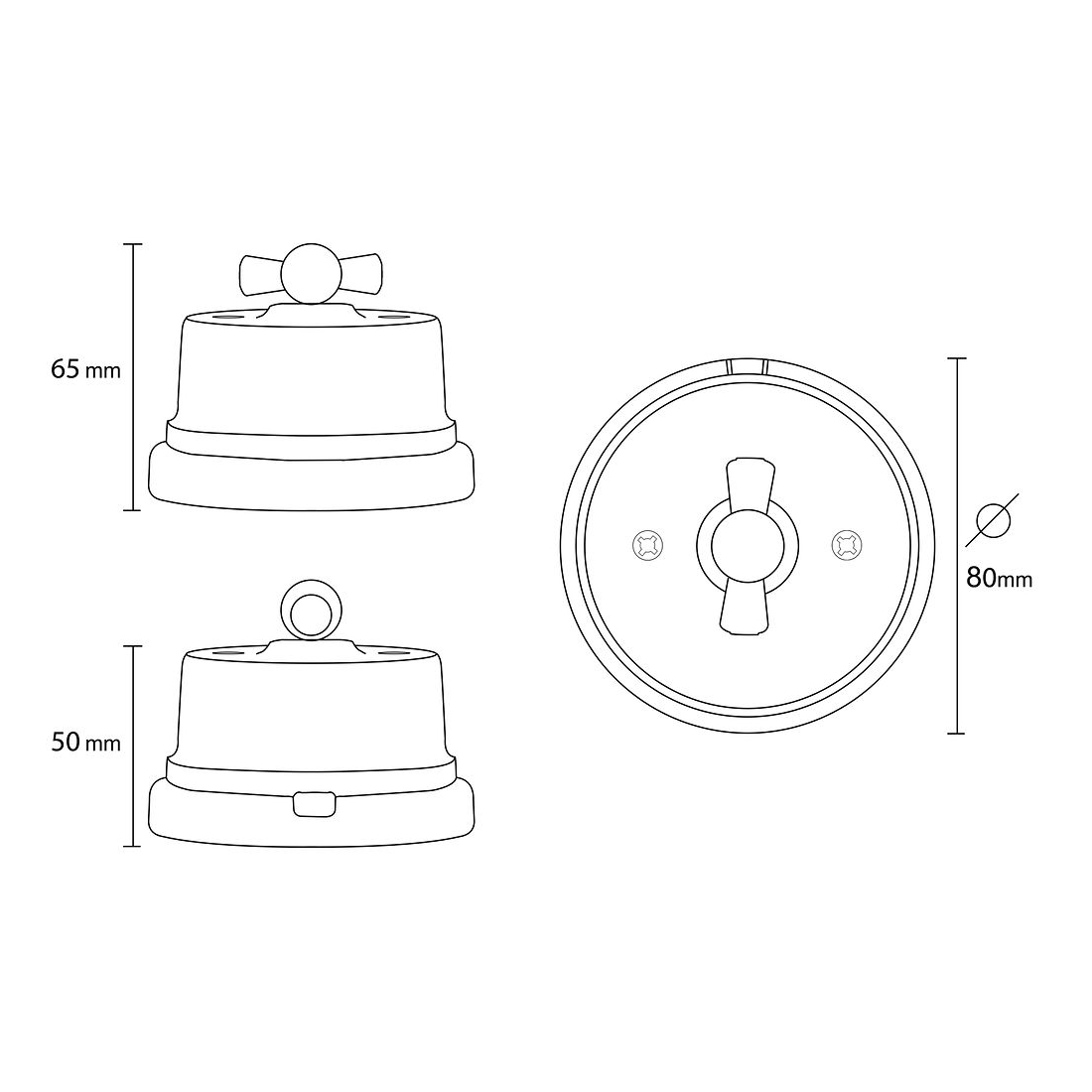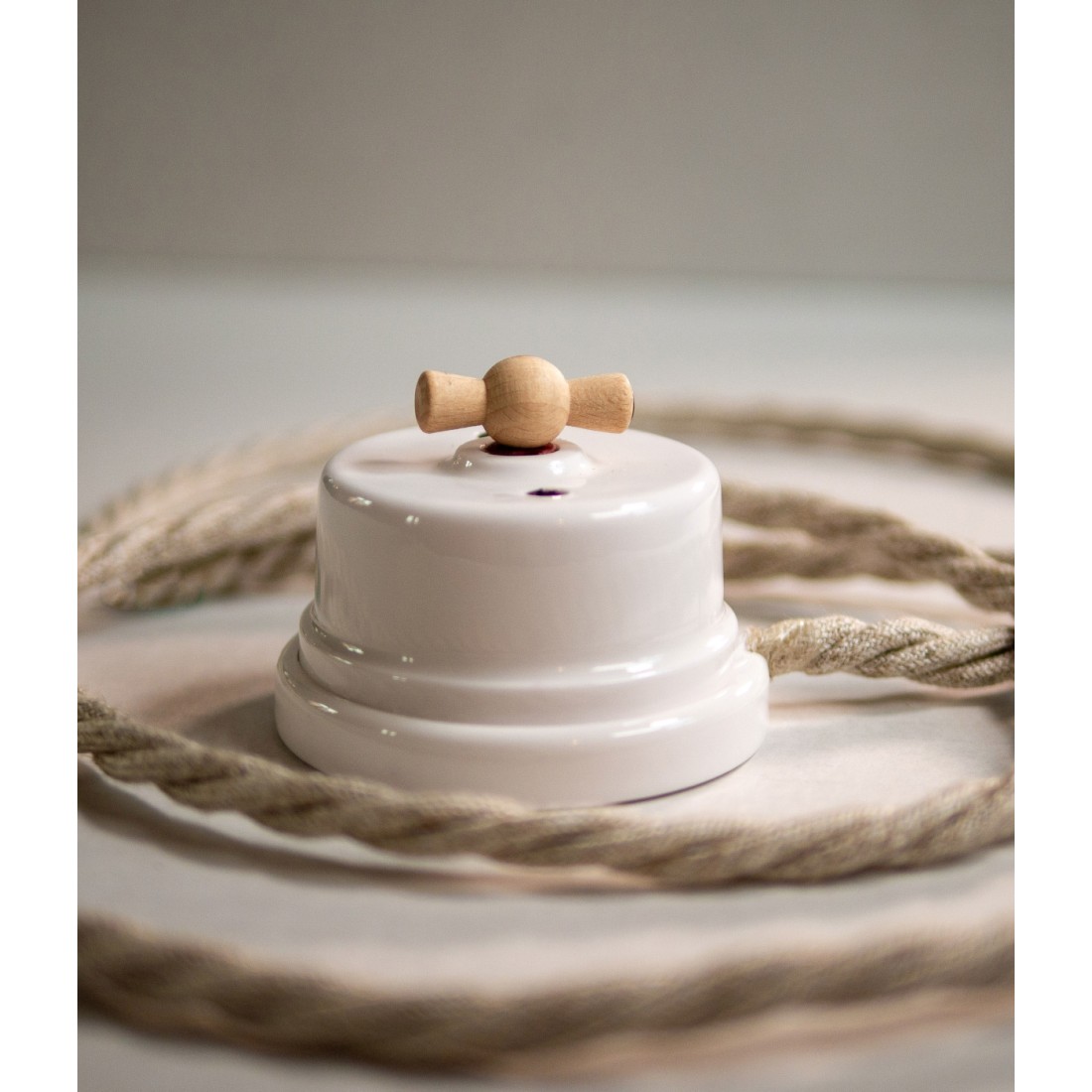Drehschalter/Wechselschalter aus Porzellan mit Schlitz aus naturbelassenem, lackierbarem Holz