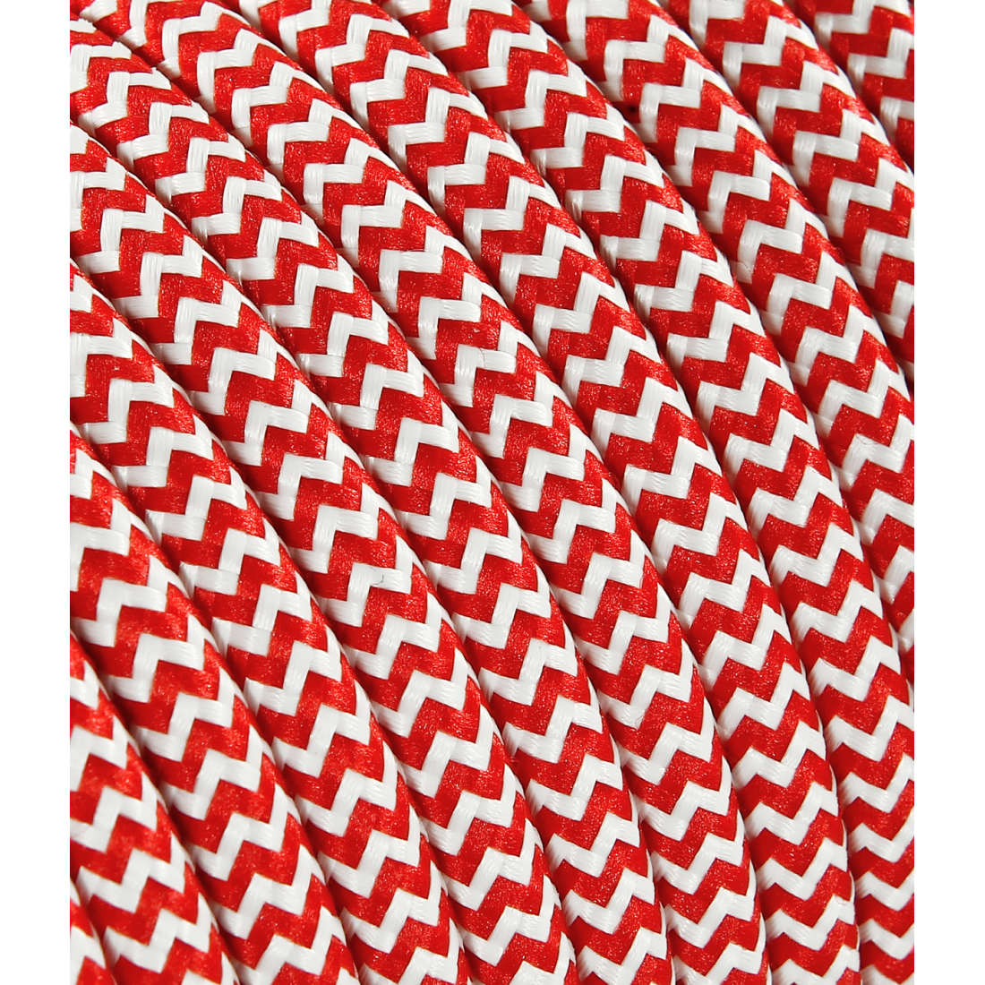Rundes, farbiges textilummanteltes Elektrokabel im Zickzack-Muster in Weiß und Rot.