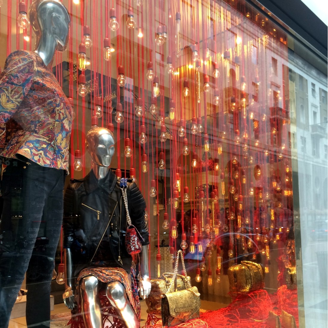 Rundes, farbiges textilummanteltes Elektrokabel in Rot.