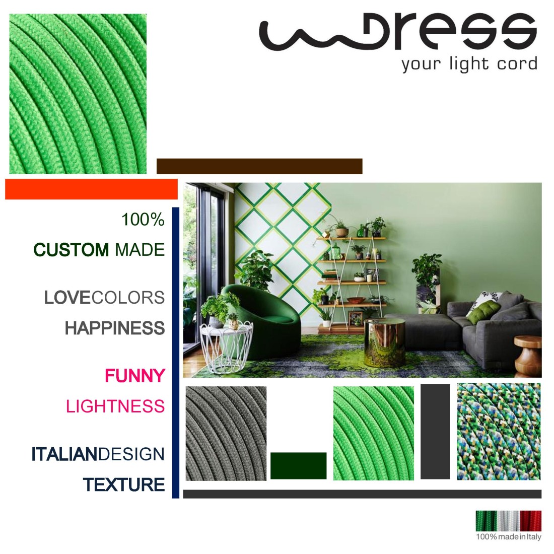 Rundes, farbiges textilummanteltes Elektrokabel in Kiwi.