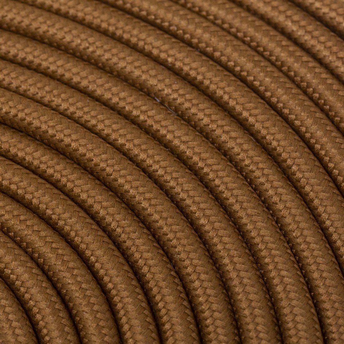 Rundes, farbiges textilummanteltes Elektrokabel in Lederbraun.