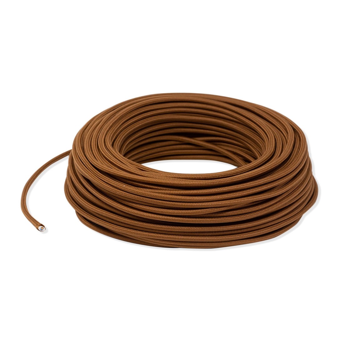 Rundes, farbiges textilummanteltes Elektrokabel in Lederbraun