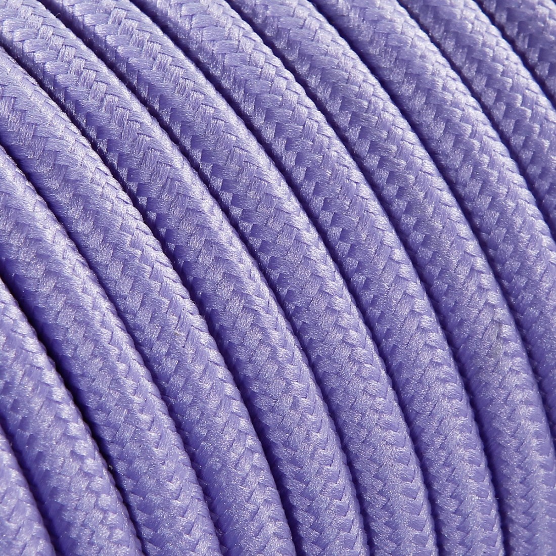 Cable eléctrico redondo revestido en tejido de color lila.