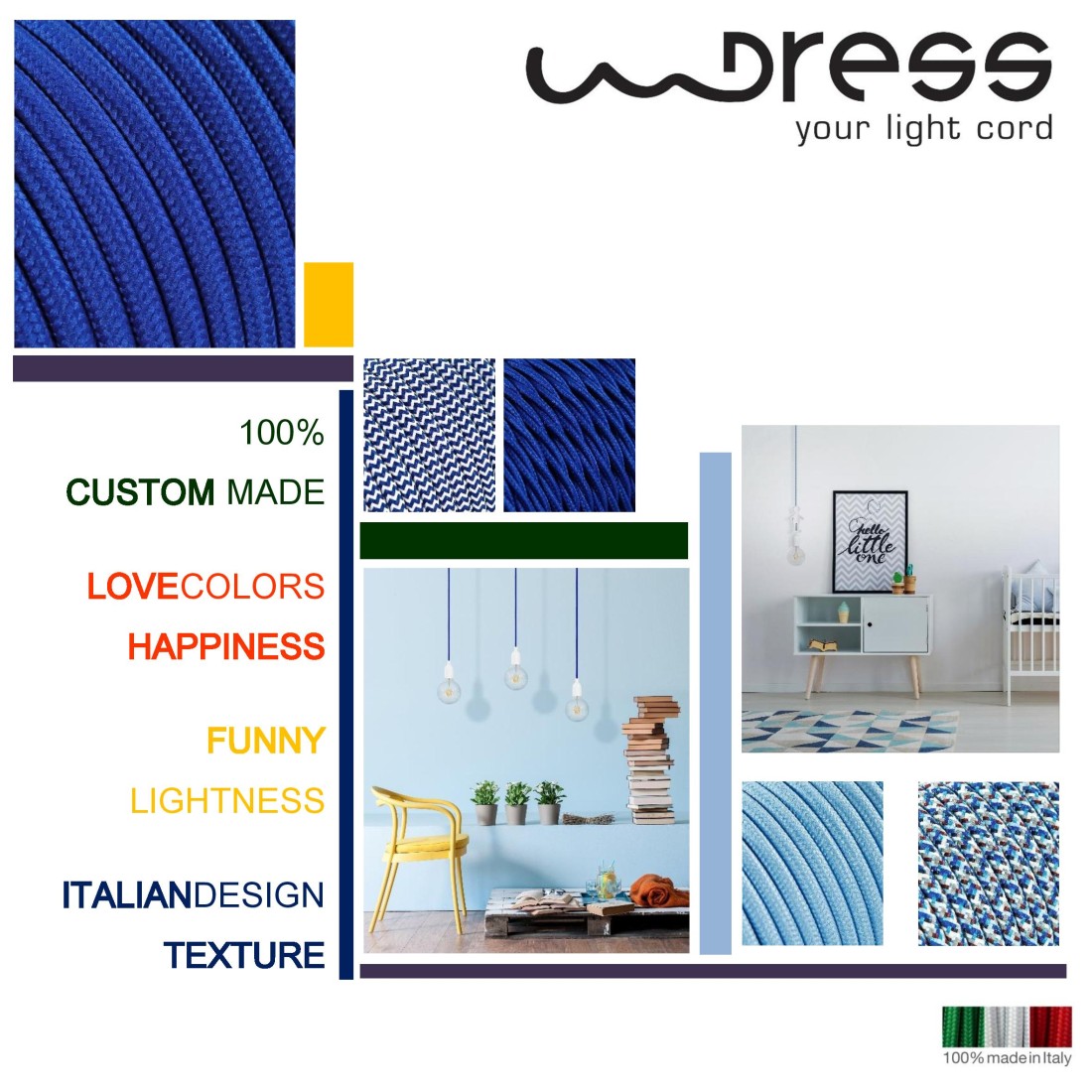 Elige entre nuestros cables textiles el que más te guste, combínalo con un rosetón y un portalámparas para crear tu suspensión personalizada.