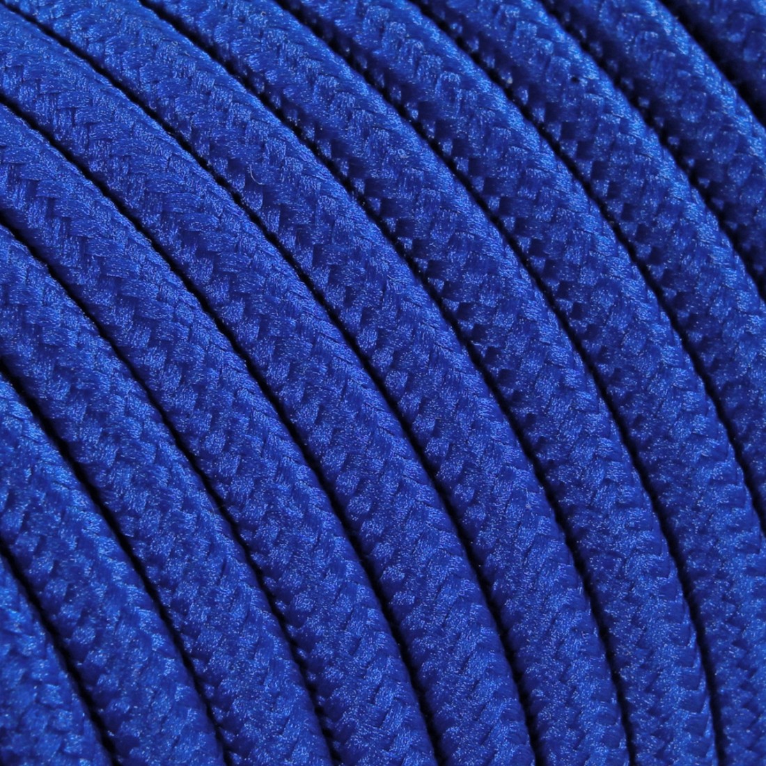 Cable eléctrico redondo revestido en tejido de color azul.