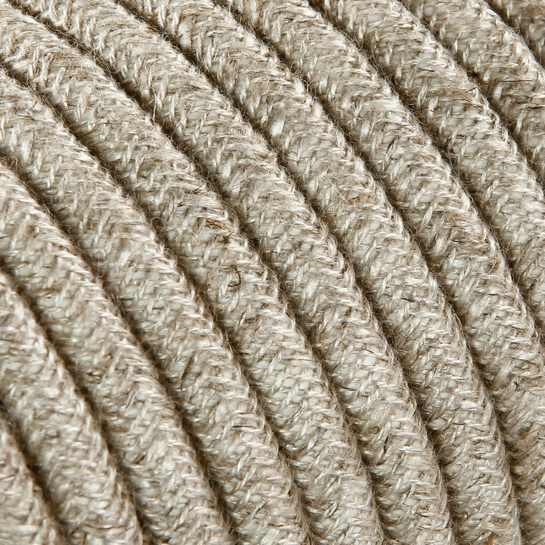 Cable eléctrico redondo revestido con tejido de hilo crudo de color canvas beige.