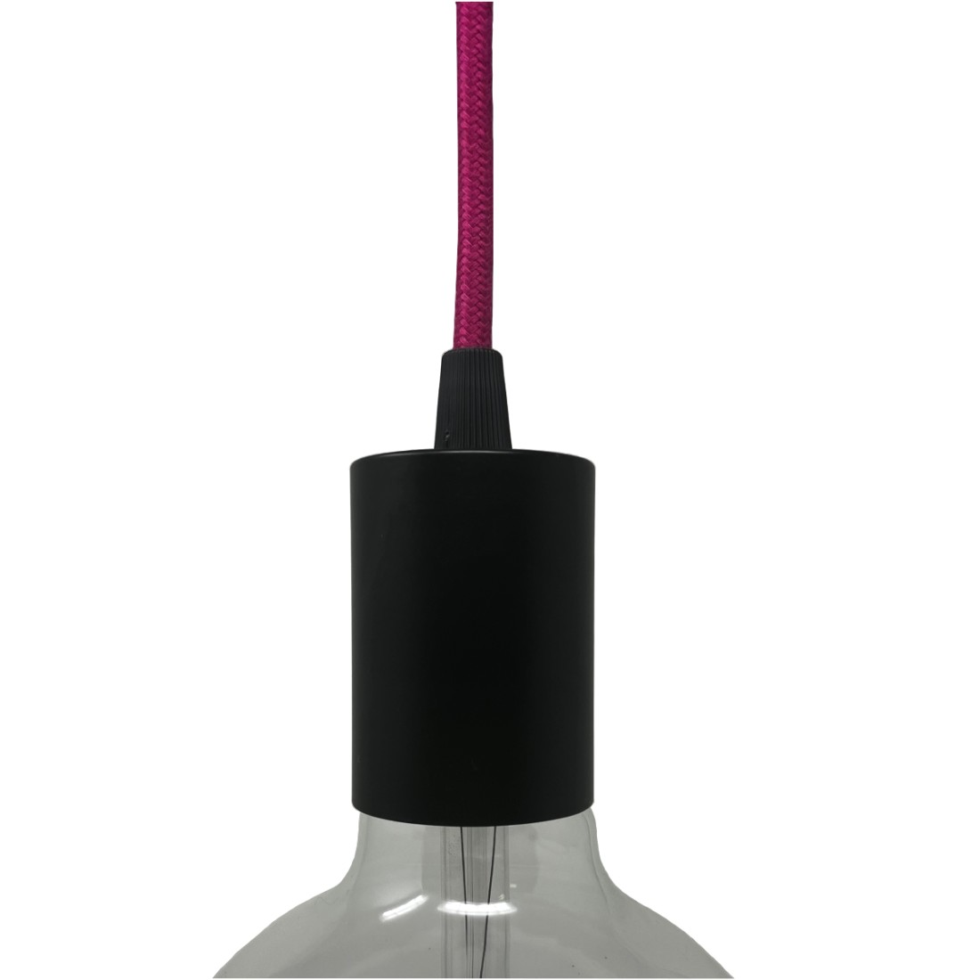 Combina el portalámpara con un rosetón, elige entre nuestros cables textiles el que más te guste y crea tu suspensión personalizada.