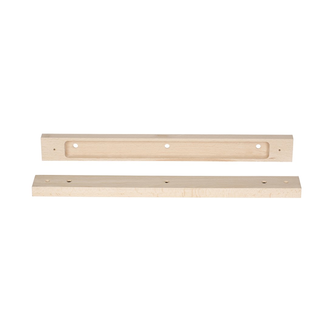 Rosetón rectangular de madera pintable con 3 orificios.