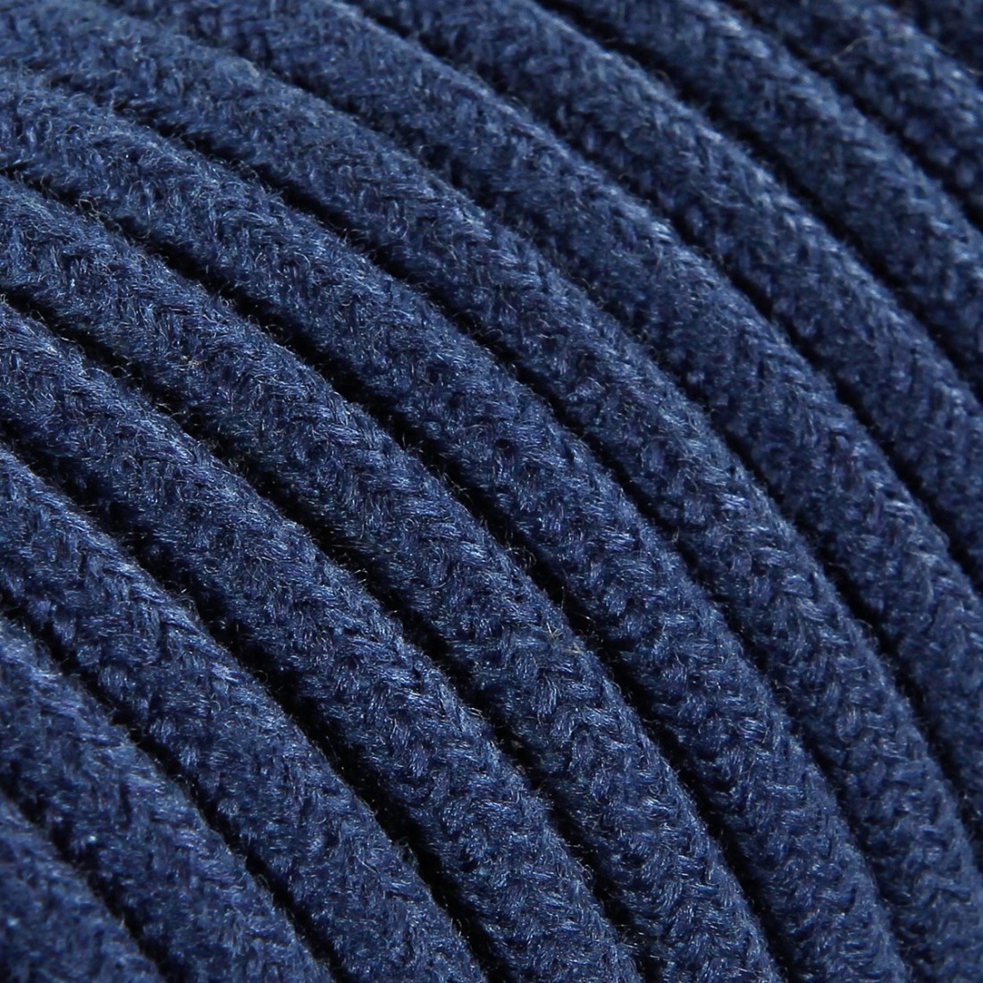 Câble électrique rond gainé de tissu fil brut coloré jean.
