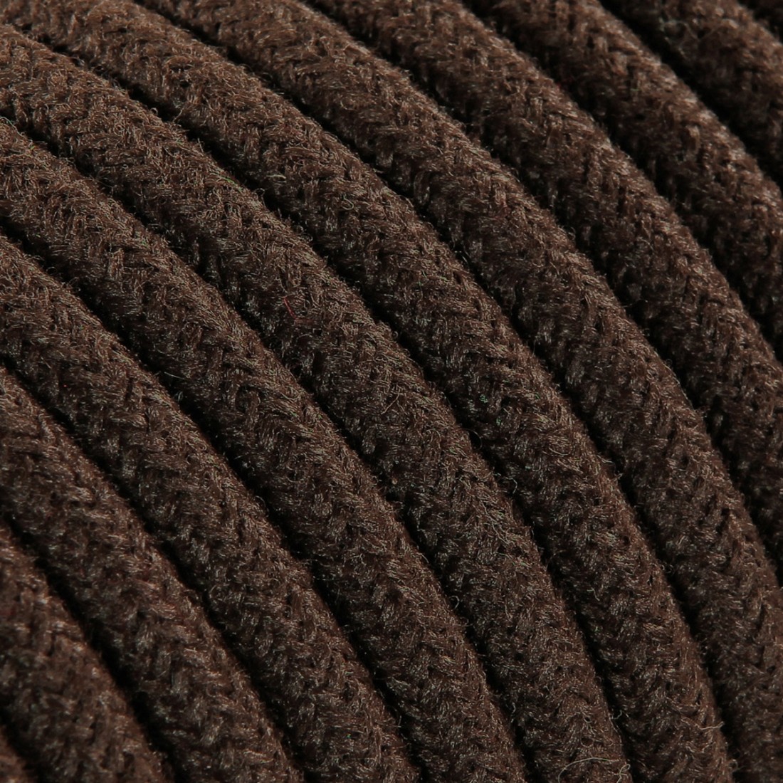 Câble électrique rond gainé de tissu fil brut coloré marron.