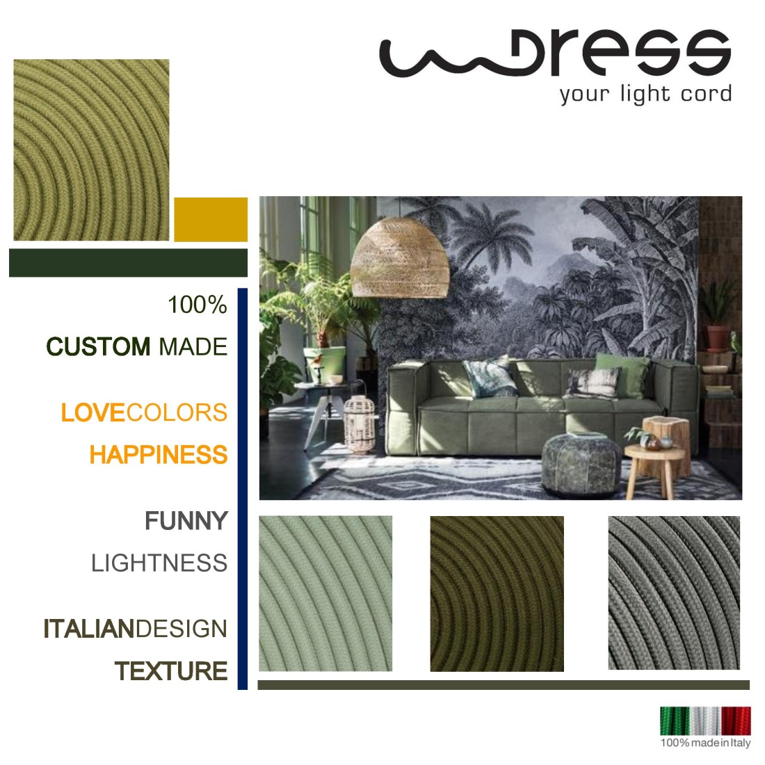 Choisissez parmi nos câbles textiles celui qui vous plaît le plus, associez-le à un pavillon et à une douille pour créer votre suspension personnalisée.