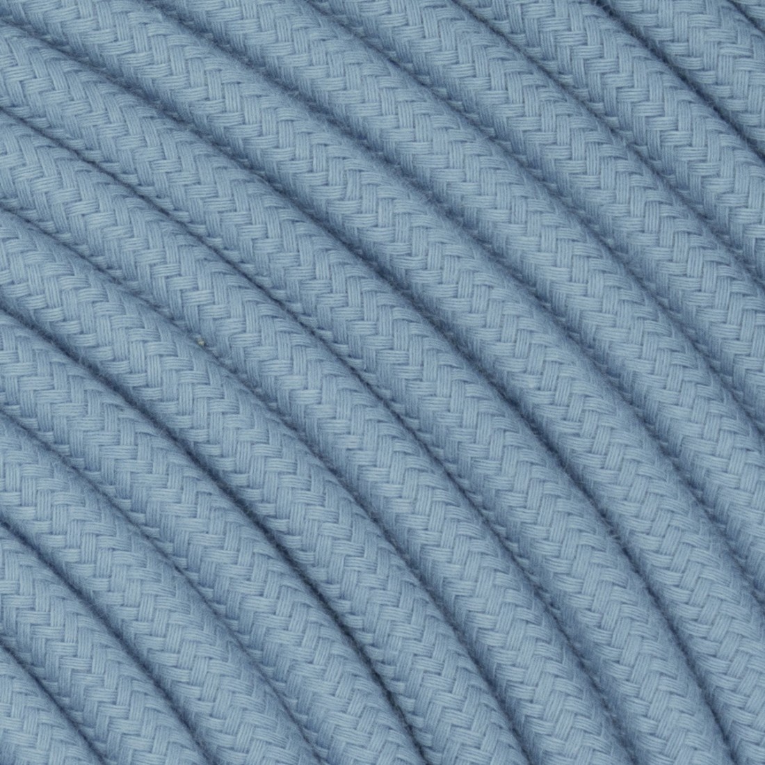 Câble électrique rond gainé de tissu fil brut coloré céleste.