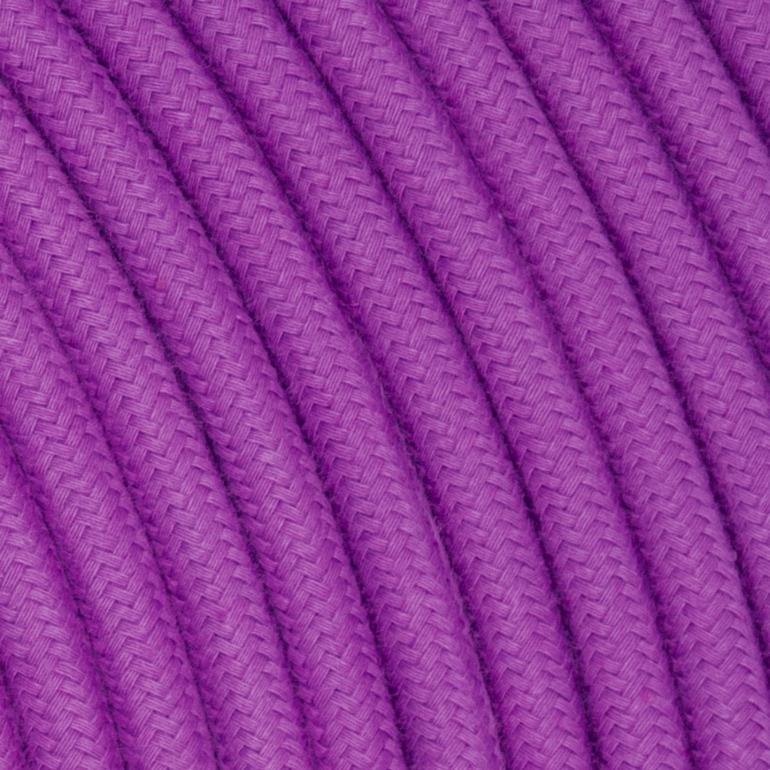 Câble électrique rond gainé de tissu fil brut coloré glicine.