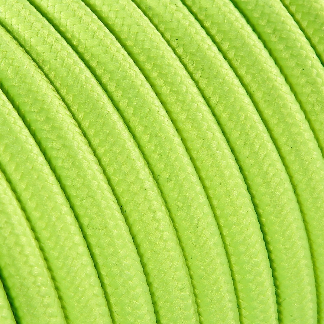 Câble électrique rond gainé de tissu coloré jaune fluo.
