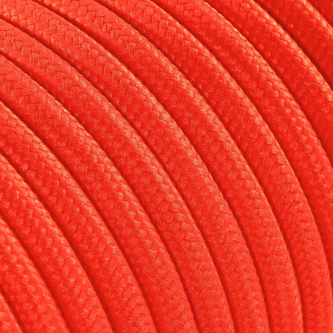 Câble électrique rond gainé de tissu coloré orange fluo.