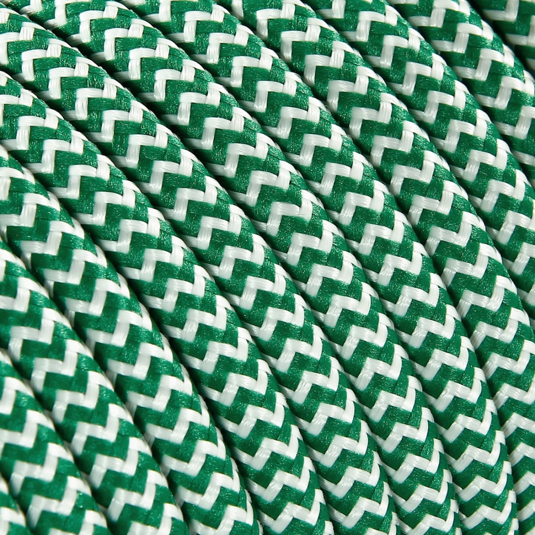 Cavo elettrico tondo rivestito in tessuto colorato zig zag bianco e verde