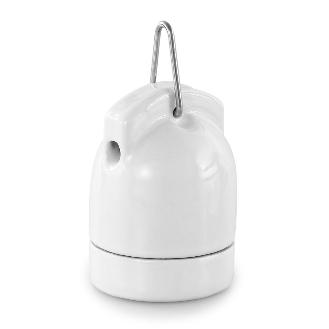 Douille E27 en porcelaine blanche, 1 entrée/1 sortie.