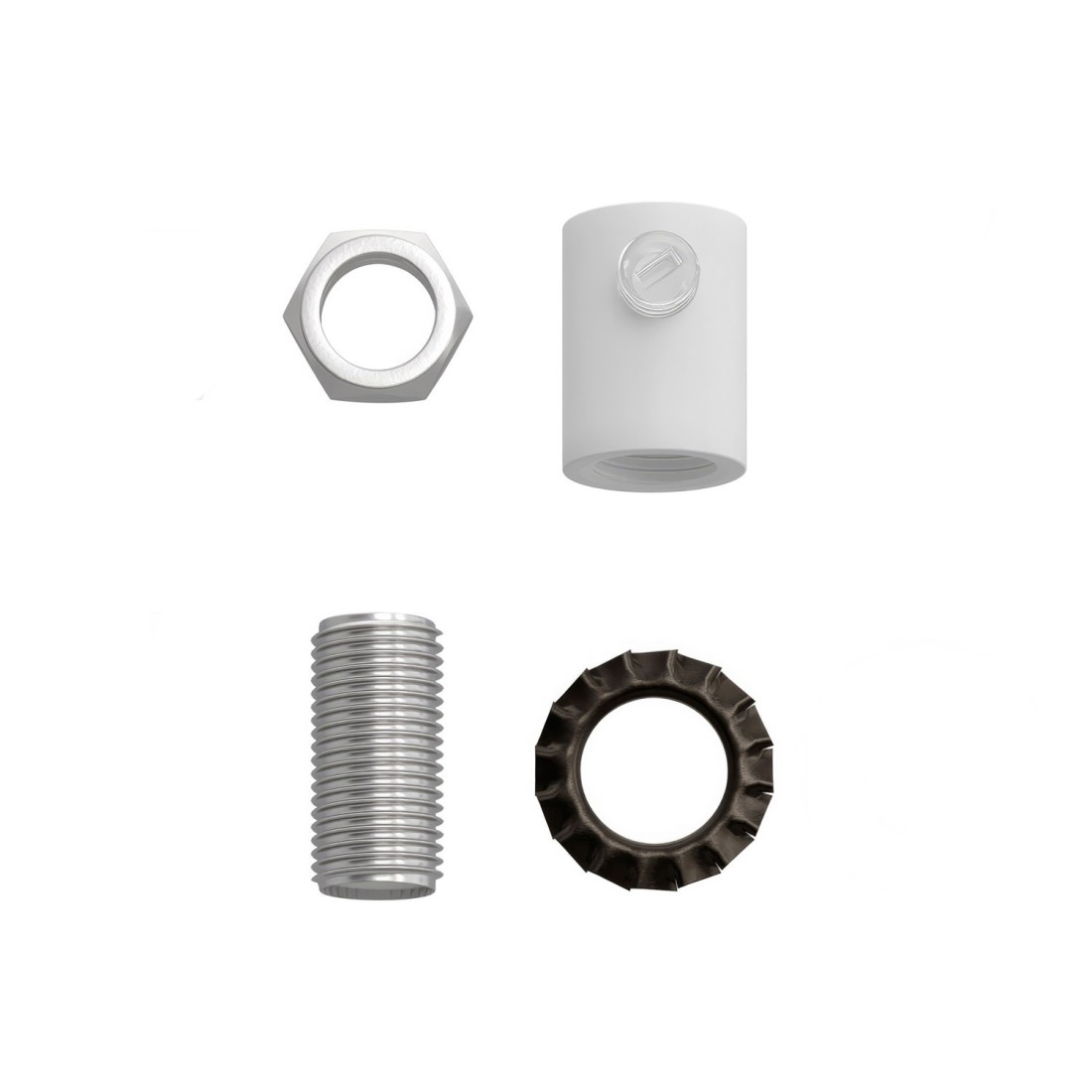 DOUILLES EN MÉTAL DOUILLE EN MÉTAL E27 BLANC 3,60 Douilles en métal. Cache en métal blanc pour douille E27 et un serre-câble en plastique. Associez la douille à un pavillon, choisissez parmi nos câbles textiles celui qui vous plaît le plus et créez votre suspension personnalisée. Le produit doit être utilisé avec des ampoules apparentes. Ajouter au panier