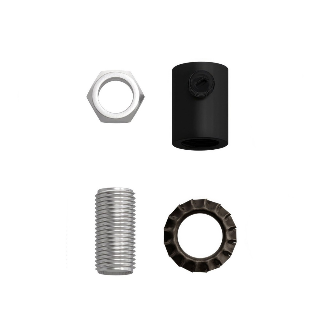 DOUILLES EN MÉTAL DOUILLE EN MÉTAL E27 NOIR 3,60 Douilles en métal. Cache en métal noir pour douille E27 et un serre-câble en plastique. Associez la douille à un pavillon, choisissez parmi nos câbles textiles celui qui vous plaît le plus et créez votre suspension personnalisée. Le produit doit être utilisé avec des ampoules apparentes. Ajouter au panier