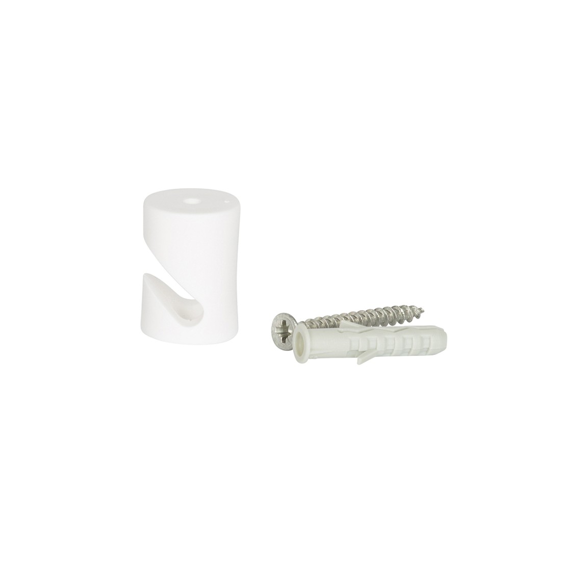 Decentratore in plastica bianco per il fissaggio a muro o a soffitto di cavi con un Ø massimo fino a 8 mm.