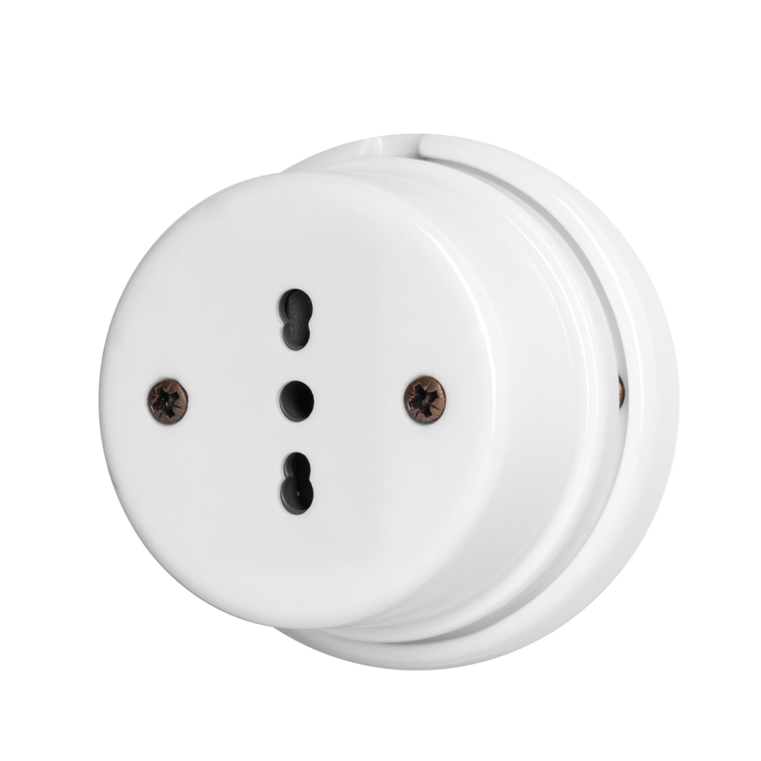 Presa 10/16A 2P+T Bipasso Italiana in porcellana bianca