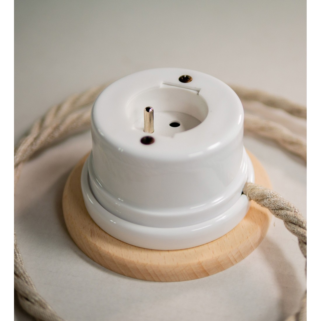 Presa Francese 16A 2P+T in porcellana bianca con base in legno naturale verniciabile