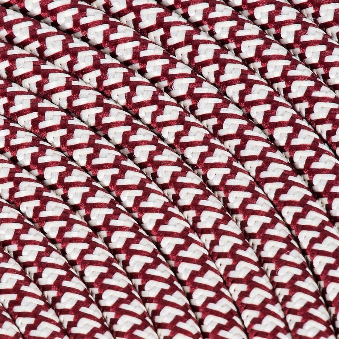 Cavo elettrico tondo rivestito in tessuto colorato fantasia panna e bordeaux.