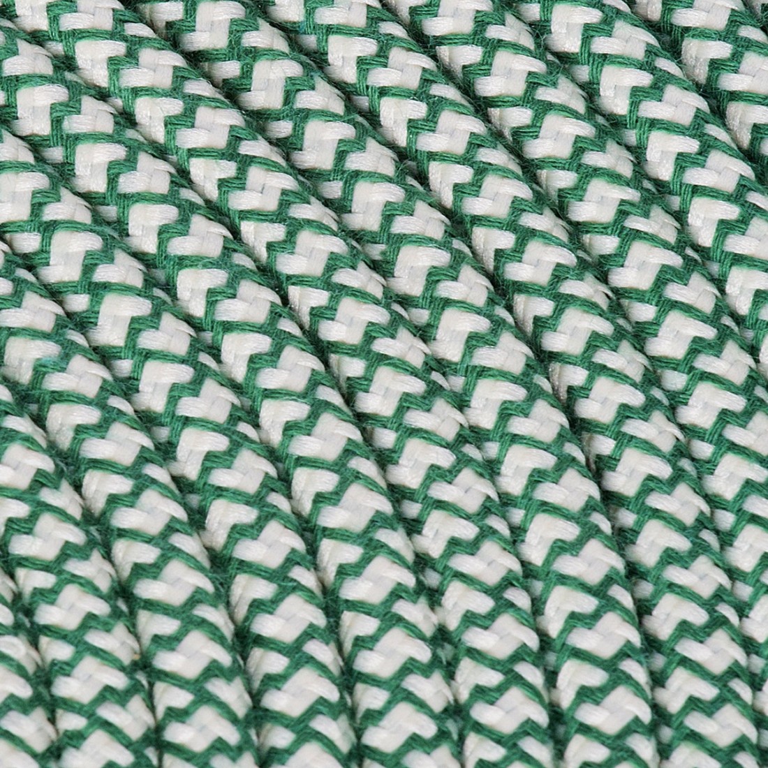 Cavo elettrico tondo rivestito in tessuto colorato fantasia panna e petrolio.