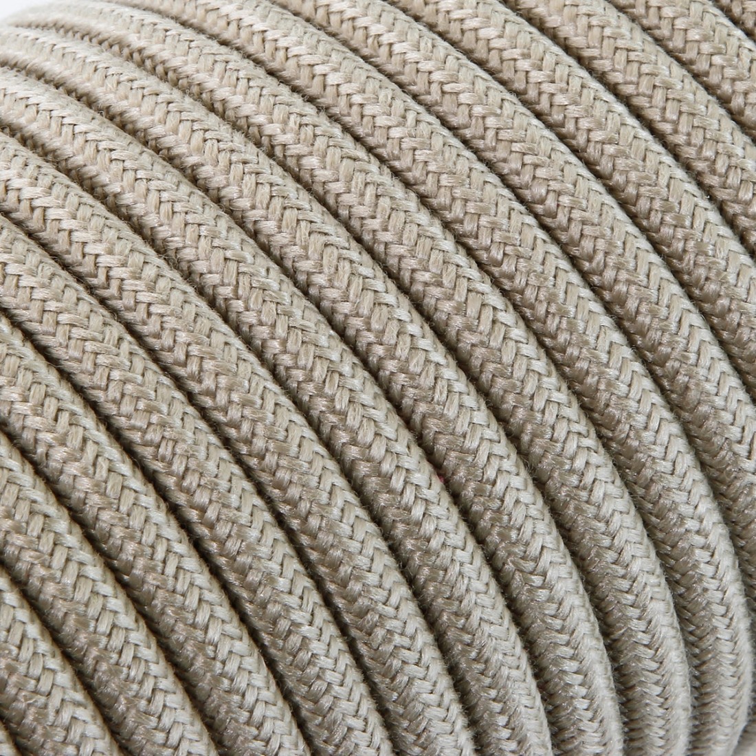 Cavo elettrico tondo rivestito in tessuto filato grezzo colorato sabbia.