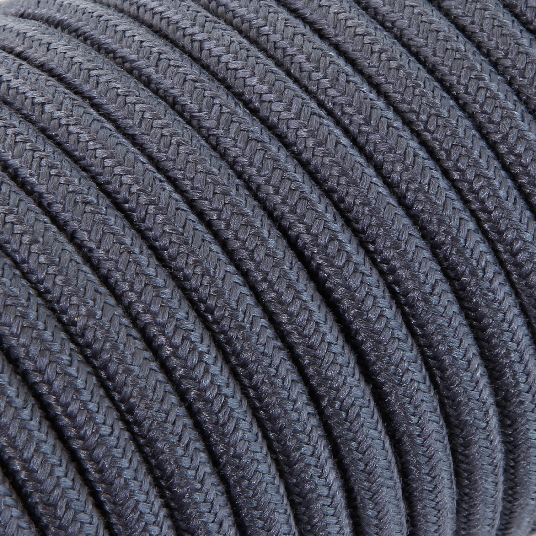 Cavo elettrico tondo rivestito in tessuto filato grezzo colorato grafite.