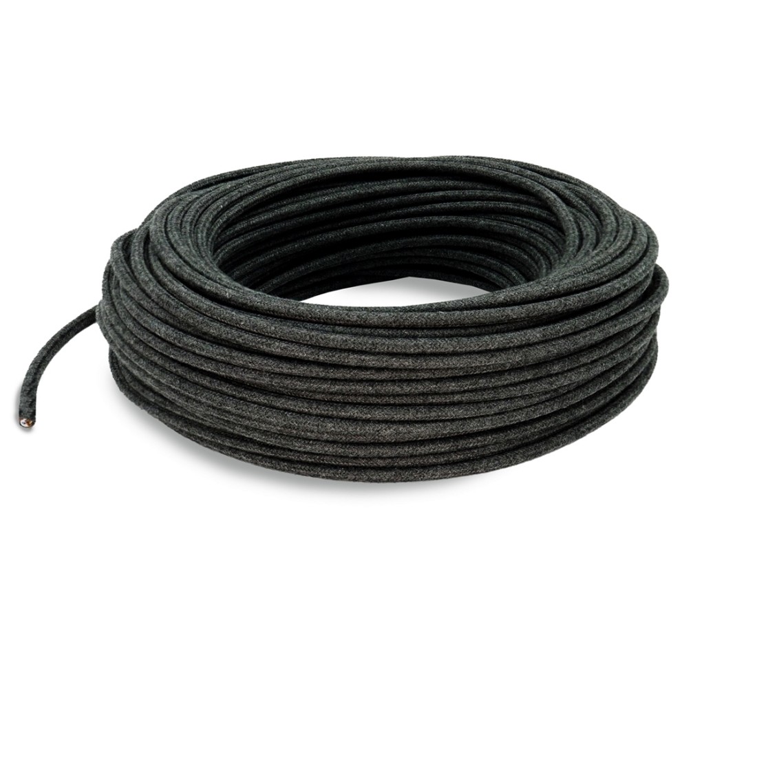 Cavo elettrico tondo rivestito in tessuto filato grezzo colorato carbone.