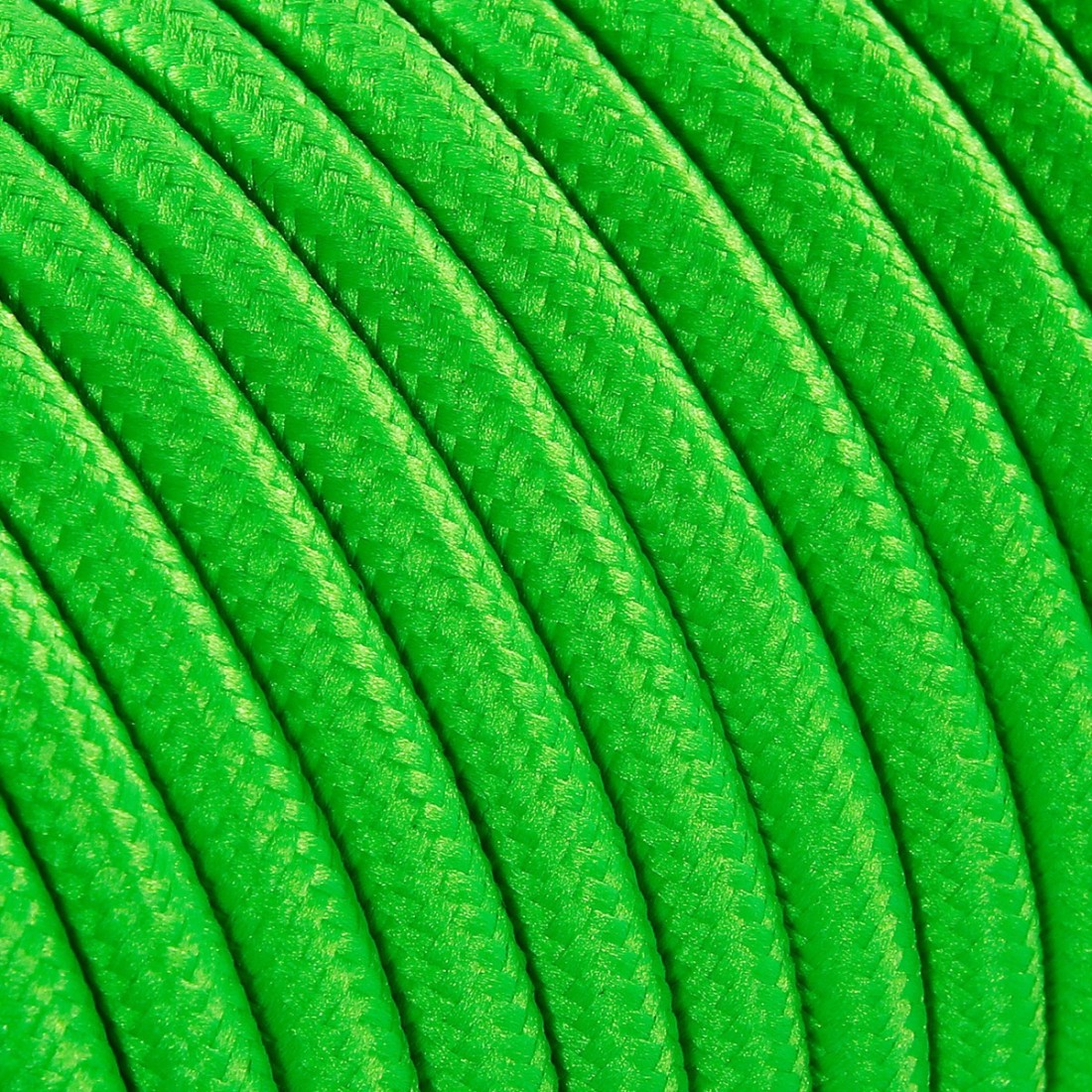Cavo elettrico tondo rivestito in tessuto colorato verde fluo.