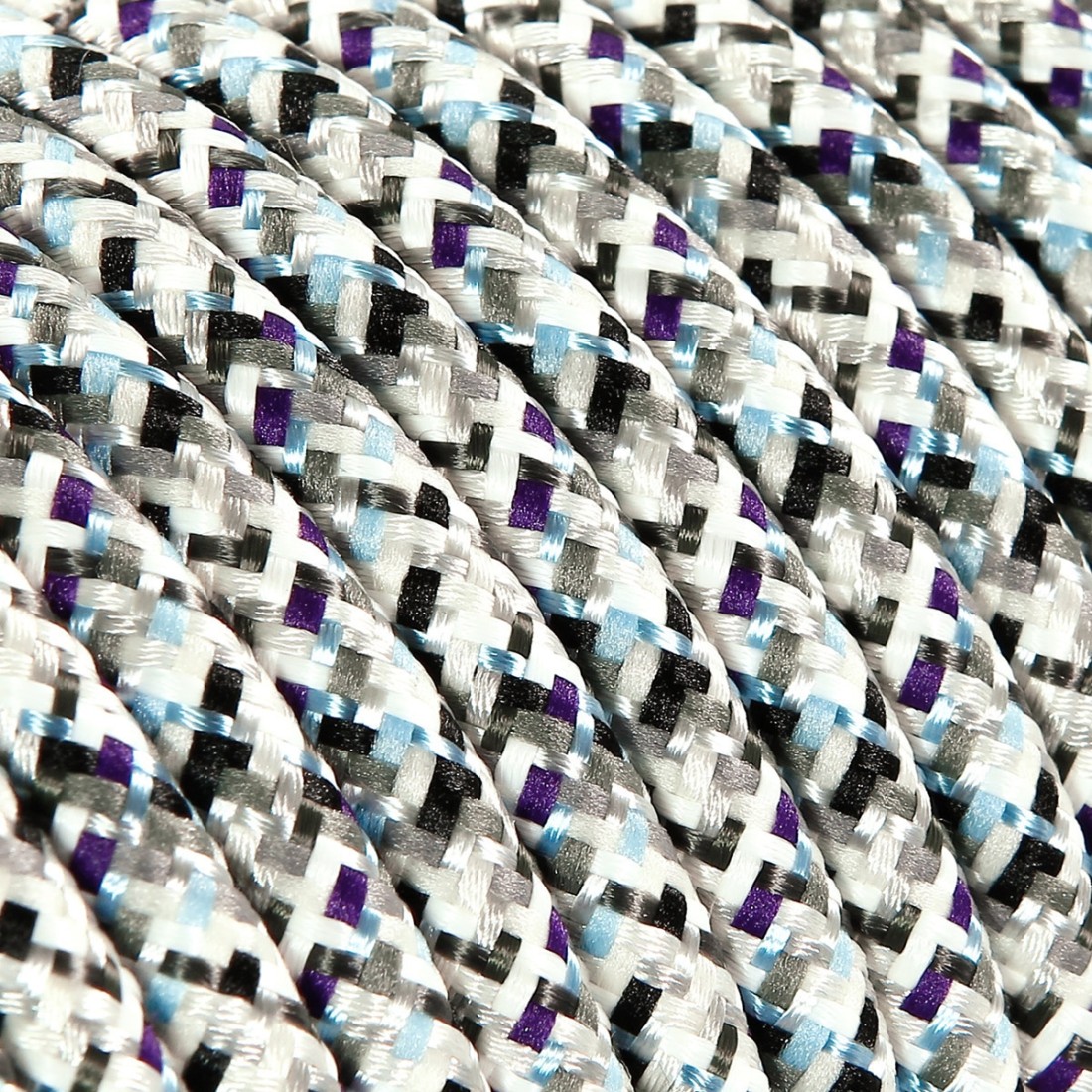 Cavo elettrico tondo rivestito in tessuto colorato fantasia pixel ghiaccio.