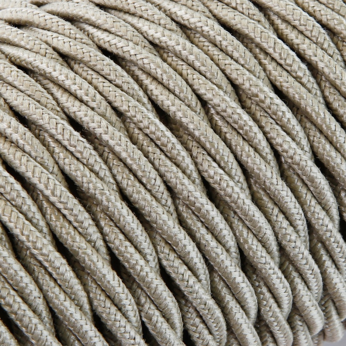 Cavo elettrico trecciato rivestito in tessuto sabbia dall'effetto grezzo.