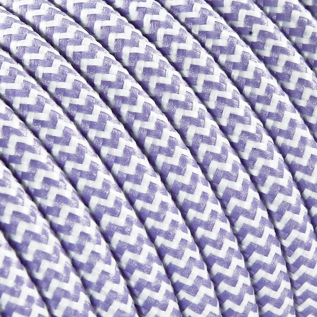 Cavo elettrico tondo rivestito in tessuto colorato zig zag bianco e lilla.