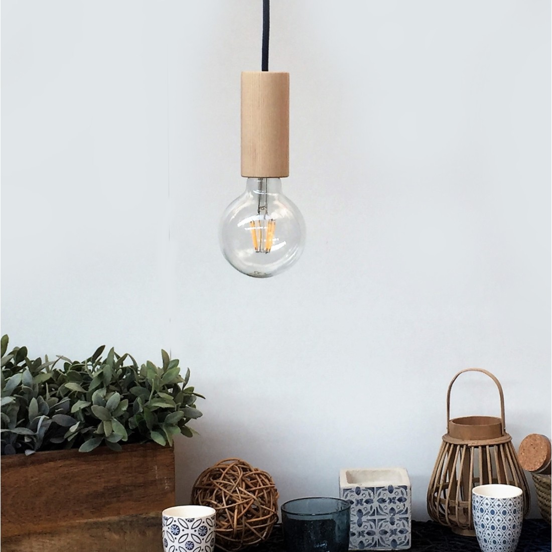 PORTALAMPADA CILINDRICO IN LEGNO E27 - h. 90mm